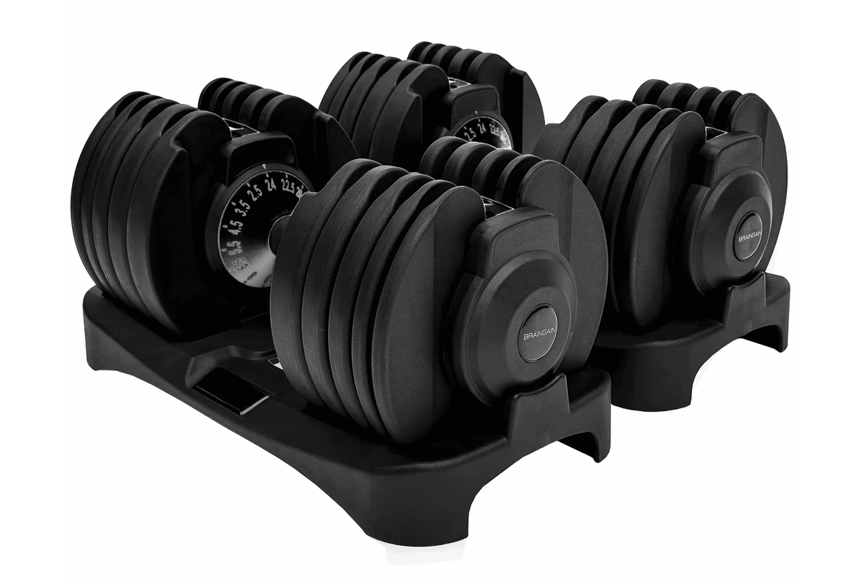 The BRAINGAIN 24kg Adjustable Dumbbells cover 15 weights in one dumbbell, letting you change from 2.5kg to 24kg with a simple twist of the handle making it a space, time and money saver. The innovative 24kg Adjustable Dumbbells are the perfect dumbbell for your home gym set up, whether you’re looking to train in your garage or your living room, removing the need for a full rack of dumbbells and can be used to build, strengthen and tone your entire body.