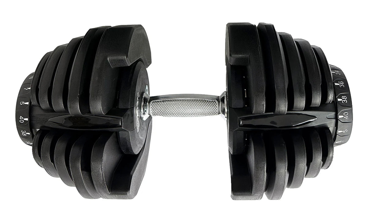 The BRAINGAIN 40kg Adjustable Dumbbells is the equivalent to 17 individual fixed weight dumbbells. Increments: 5kg, 7kg, 9kg, 11kg, 13kg, 15kg, 18kg, 20kg, 22kg, 25kg, 27kg, 29kg, 32kg, 34kg, 36kg, 38kg, 40kg.