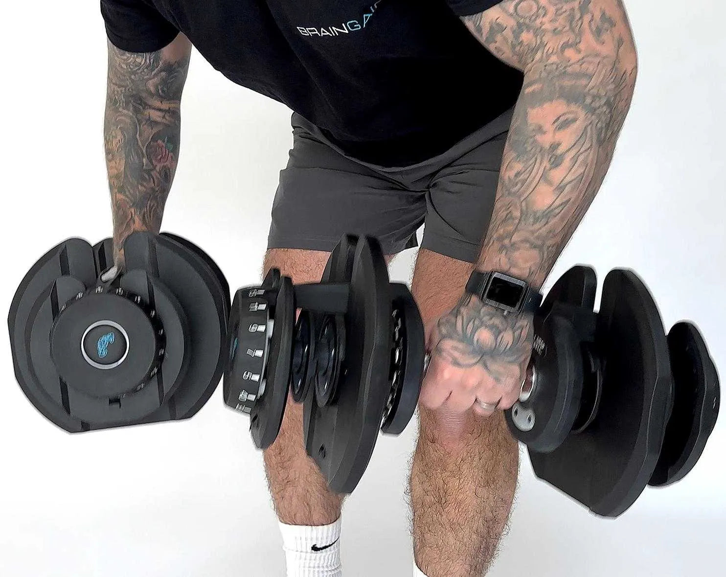 Explore the key features of our 40kg Adjustable Dumbbell (Pair) by clicking on the pulsing highlights.